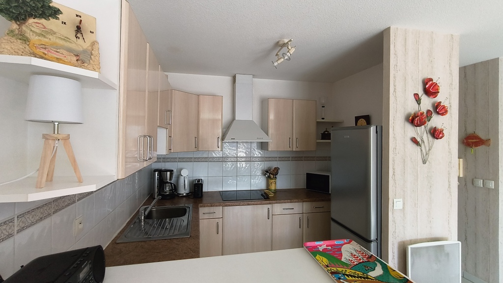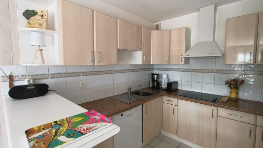 - une cuisine américaine très bien équipée (micro-ondes, frigo/congélateur, lave vaisselles, cafetière filtre, bouilloire, grille pain...)