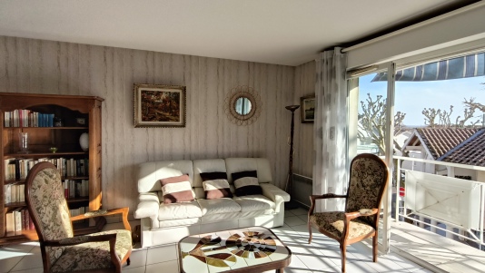 - une belle pièce à vivre d'environ 30 m² ouvrant sur un petit balcon équipé d'une table bistrot et 2 chaises