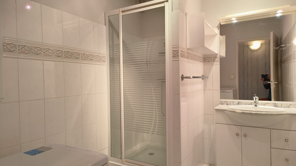 - 1 salle d'eau avec meuble vasque, douche, machine à laver le linge