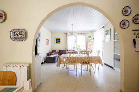 - Une véranda avec un espace repas ouvrant sur la terrasse à l'arrière,