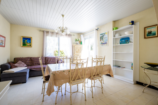 - Une belle pièce à vivre composée d'une séjour/salle à manger équipée d'une table à manger pour 6 personnes un canapé convertible (pouvant accueillir 1 adulte ou 2 adolescents), une télévision,