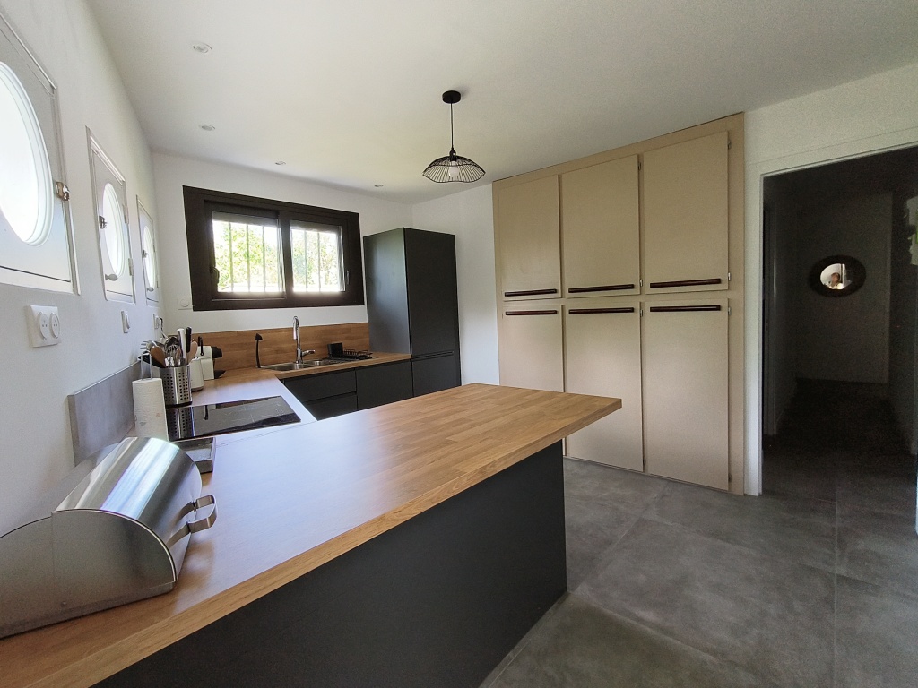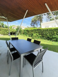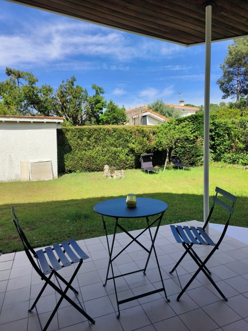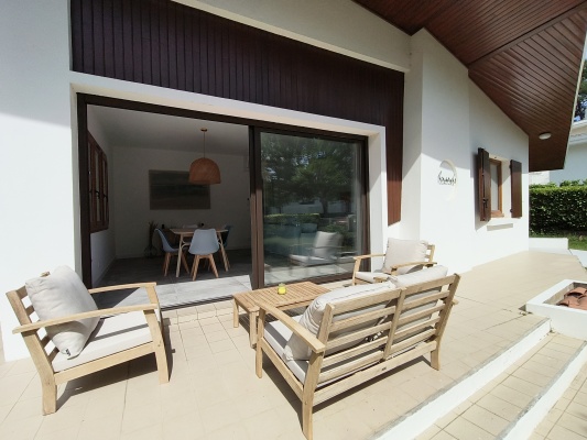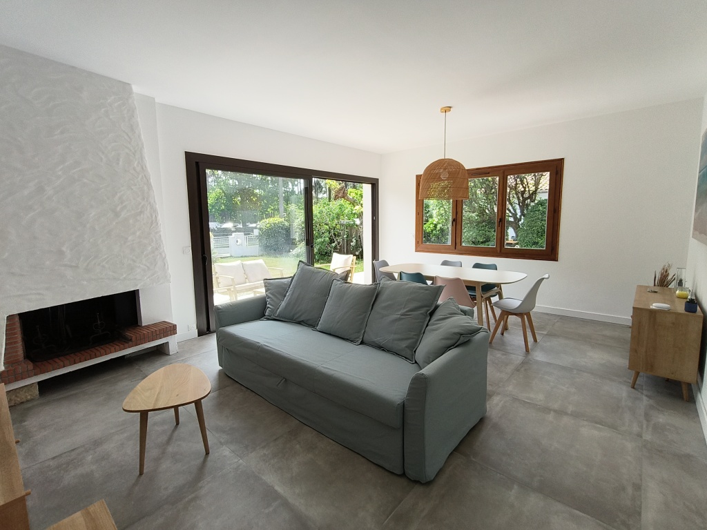 - une jolie pièce à vivre climatisée ouverte sur le jardin avec une grande baie vitrée ,