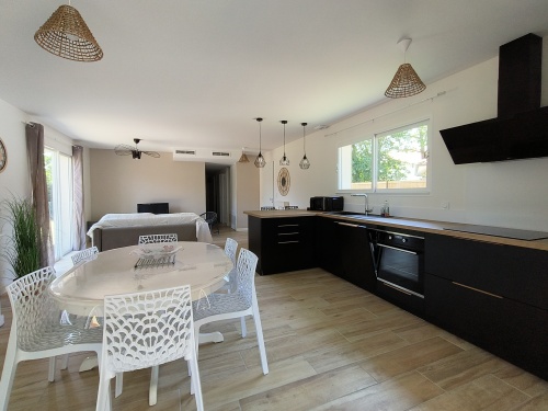 - d'une belle pièce à vivre d'environ 40 m² avec cuisine américaine entièrement équipée ouvrant sur la terrasse et le jardin