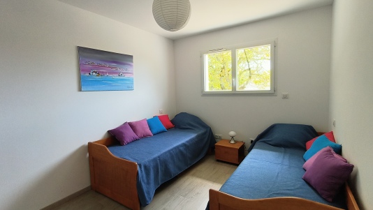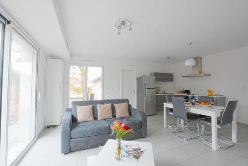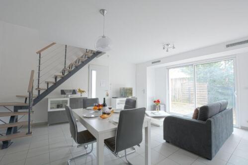 La maison "Les Fougères" est une maison contemporaine, idéalement située face à la piste cyclable menant au centre-ville en seulement 5 mn à vélo. La plage accessible à pied en 5 mn également ainsi que plusieurs commerces de proximité. Cette maison à étage est conçue pour accueillir confortablement 4 personnes avec sa belle pièce à vivre intégrant une cuisine américaine, une salle d'eau spacieuse, les 2 chambres sont à l'étage avec un WC indépendant. un jardin et un espace repas aménagé.