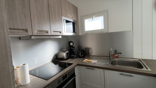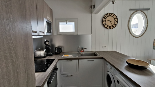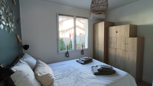 Situé dans un quartier calme, L'escale du Bassin est une jolie petite maison de vacances aménagée avec goût et des prestations de qualité pour vous assurer un séjour très confortable. D'environ 35 m², elle est conçue pour accueillir 2 à 3 personnes, se composant d'une jolie pièce à vivre climatisée avec cuisine américaine, coin salon et coin repas ouvrant sur la terrasse et le jardin de 160 m² proposant un espace repas et détente, une chambre climatisée, salle d'eau attenante et wc indépendant