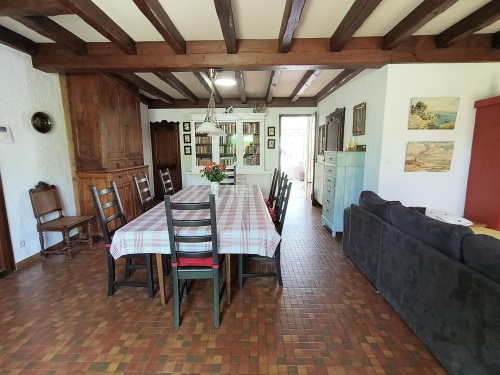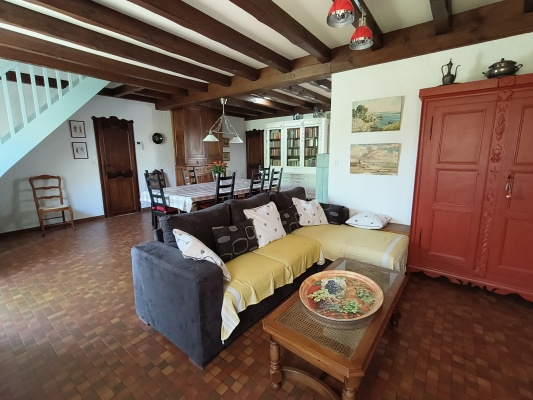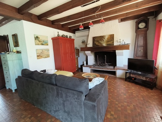 - une belle pièce à vivre climatisée avec un coin salon confortable, une télévision, un espace salle à manger avec une grande table avec 8 chaises,