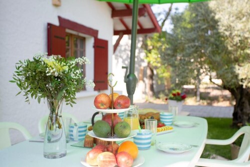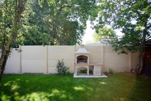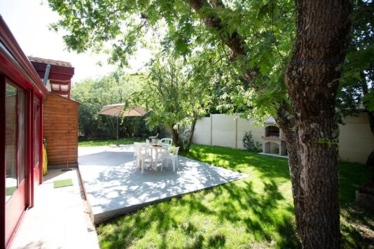 A l'extérieur : la maison est entourée d'une joli jardin arboré de 650 m² entièrement clos avec plusieurs zones de repas, un barbecue et la possibilité de rentrer les voitures.