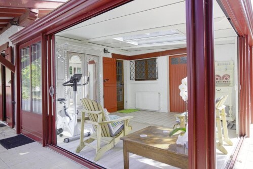 - une véranda attenante aménagée en salon ouvrant sur le jardin à l'arrière